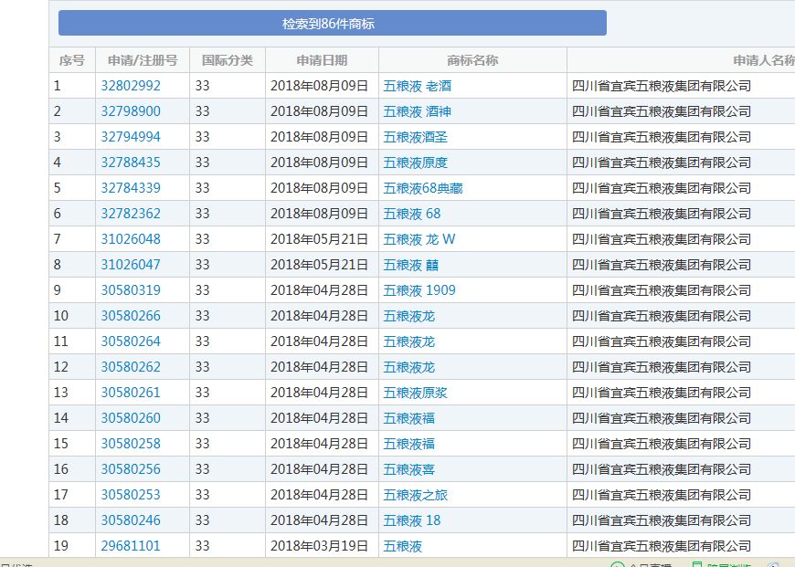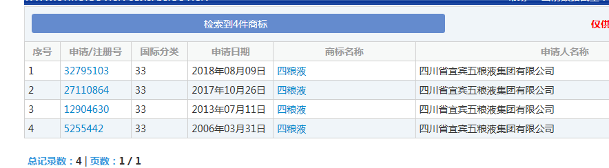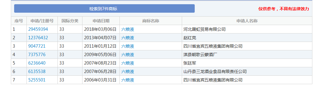 一個(gè)已經(jīng)進(jìn)入初審公告期,一個(gè)已經(jīng)作廢。2007年申請的“六糧液”商標(biāo),2011年注冊成功,現(xiàn)在已經(jīng)顯示無效。